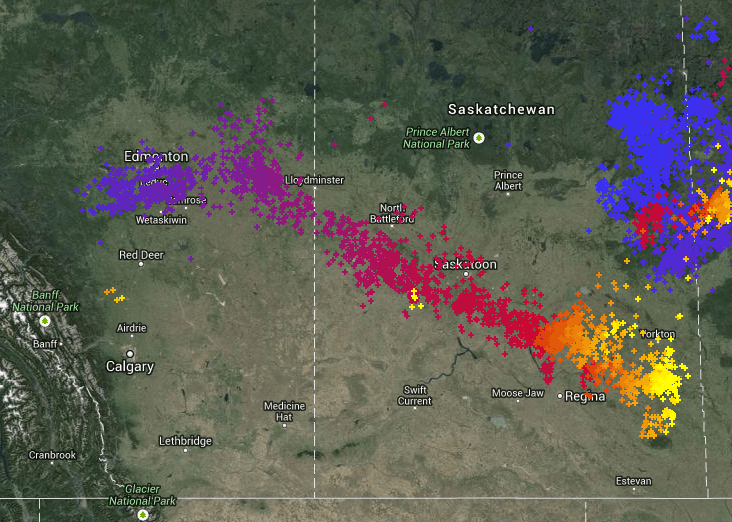 Long track thunderstorms bring Edmonton’s first major storm and trigger tornadoes in Saskatchewan